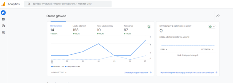 Kolejnym etapem poszerzania swojej wiedzy jest bazowanie na raportowaniu i wizualizacji. W pewnym momencie dochodzimy do etapu, w którym wbudowany moduł raportowania GA4 nie jest już wystarczający. Rozpoczynamy poszukiwać nowych rozwiązań raportowania i natrafiamy na Data Looker, w którym proces ten jest bardzo podobny, jednak daje więcej możliwości i elastyczności pod względem wizualizacji.