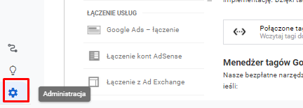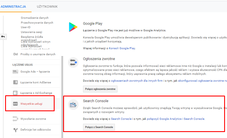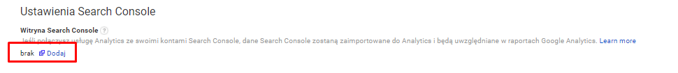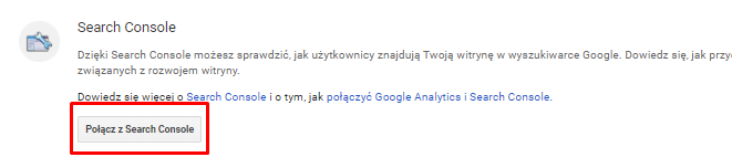 8. Po zapisaniu, zobaczymy w GA, że nasze konto jest połączone z GSC.
