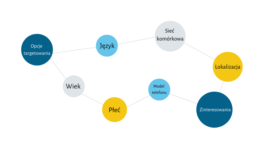 Tinder oferuje wiele opcji targetowania. Te najbardziej popularne to wiek, płeć, lokalizacja, model i system operacyjny telefonu, sieć komórkowa oraz język, jakim posługuje się użytkownik.