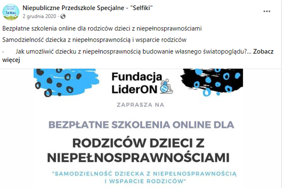 Źródło: Profil Niepublicznego Przedszkola Specjalnego „Selfiki” na Facebooku.