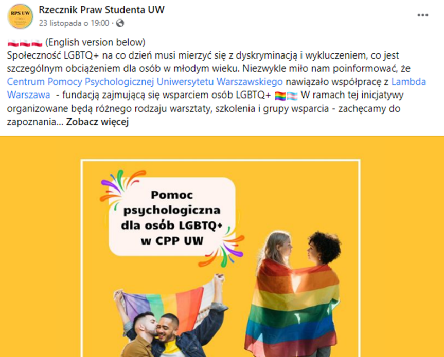 Źródło: Profil Rzecznika Praw Studenta UW na Facebooku.