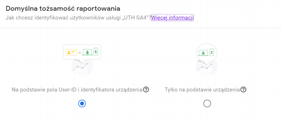 Na koniec warto dodać, że w ustawieniach usługi możemy wybrać tożsamość raportowania, czyli domyślny zakres opisanych wyżej sygnałów, na których podstawie mają być identyfikowani użytkownicy.