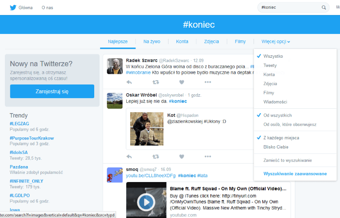 - Zobaczyć najpopularniejsze posty, po wybraniu określonego hasła