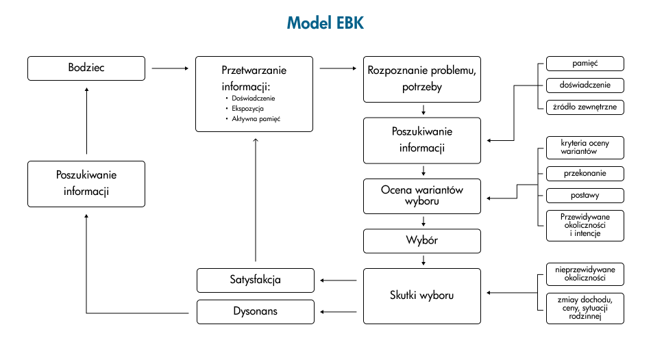 Model Engel'a-Kollat'a-Blackwella (EKB) to jeden z najbardziej znanych modeli zachowań konsumentów, który wciąż ma zastosowanie w dzisiejszych czasach, szczególnie w kontekście działań marketingowych w Internecie. Według tego modelu, w procesie podejmowania decyzji zakupowych, klient przechodzi aż przez 5. etapów: