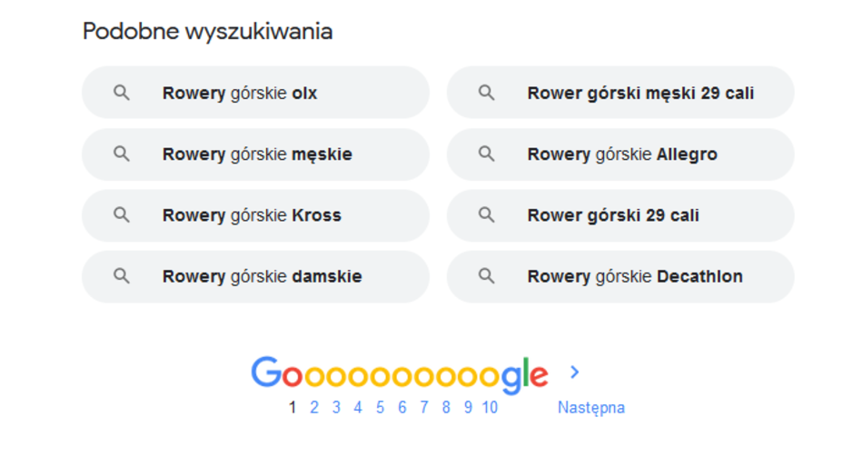 2. Po otrzymaniu wyników, pod ostatnim SERP-em również pojawiają się podobne wyszukiwania.