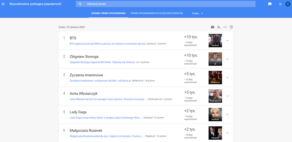 Google Trends - https://trends.google.com/trends/trendingsearches/daily?geo=PL.