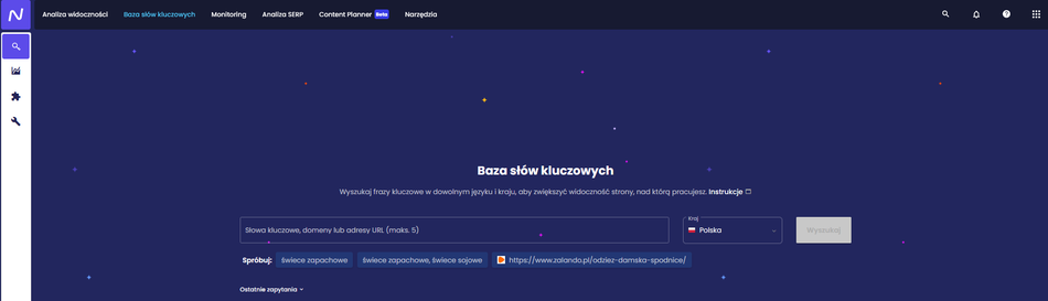 Semstorm to kolejne polskie narzędzie będące dużym wsparciem dla specjalistów SEO. Oferuje liczne rozwiązania, takie jak Analiza stron, Monitoring, Asystent contentu, Słowa kluczowe, Audyty czy Narzędzia treści. Niemniej jednak, na poczet artykułu skupimy się na funkcjonalności Słowa kluczowe.