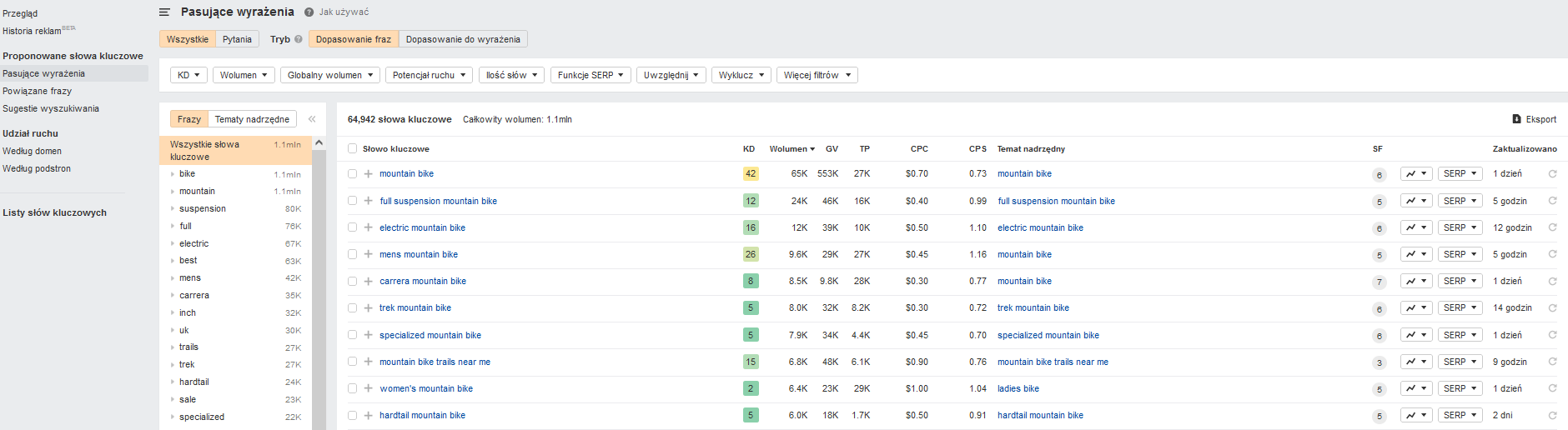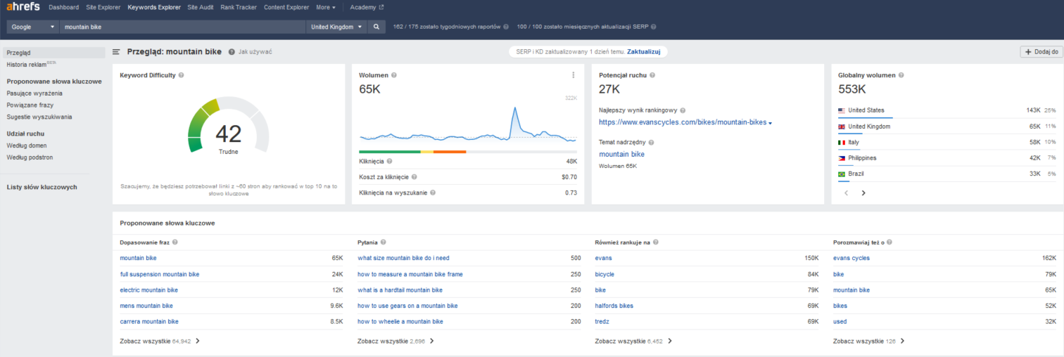 - Ahrefs – analiza fraz nie tylko w polskim języku