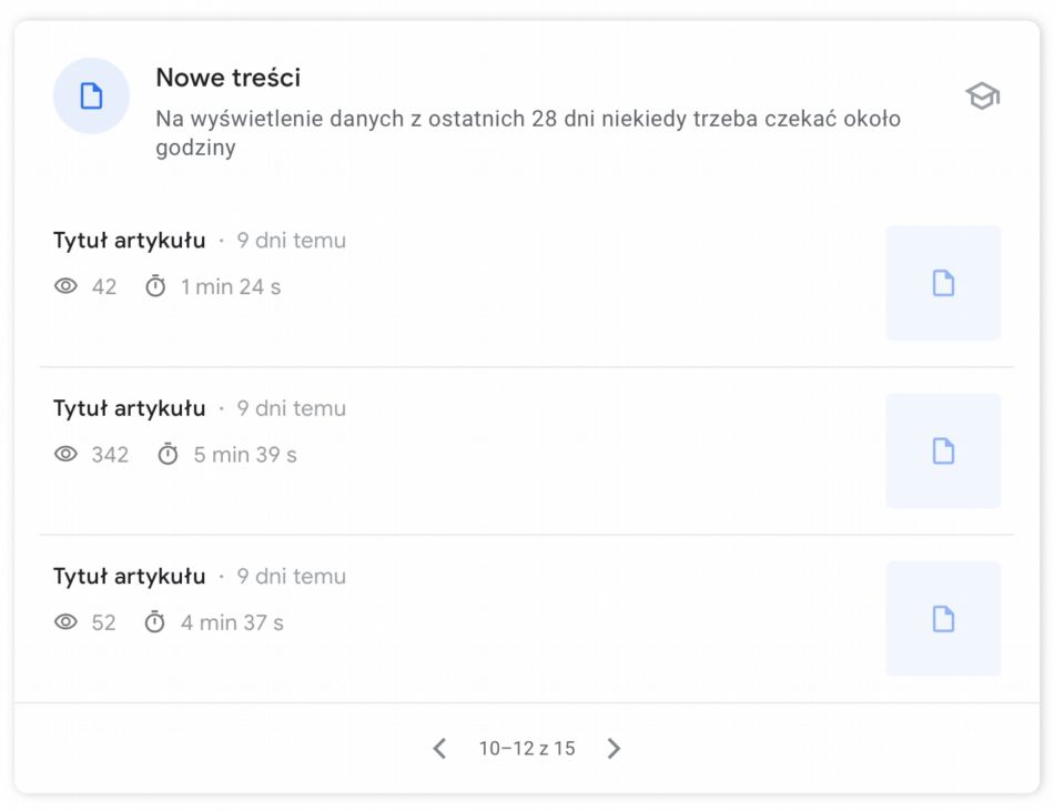 Google podkreśla, że narzędzie jest stale rozwijane, pojawiają się nowe funkcjonalności i raporty. Różnice widoczne mogą być w przypadku innych kont, a przede wszystkim dla różnych typów stron. Nawet jeśli posiadamy sklep internetowy bez bloga, bazy wiedzy czy innego miejsca treści - to warto przetestować i sprawdzić jakie dane są już agregowane w raporcie. Oczywiście narzędzie najlepiej sprawdza się w przypadku stron contentowych, serwisów informacyjnych, blogów czy portali.