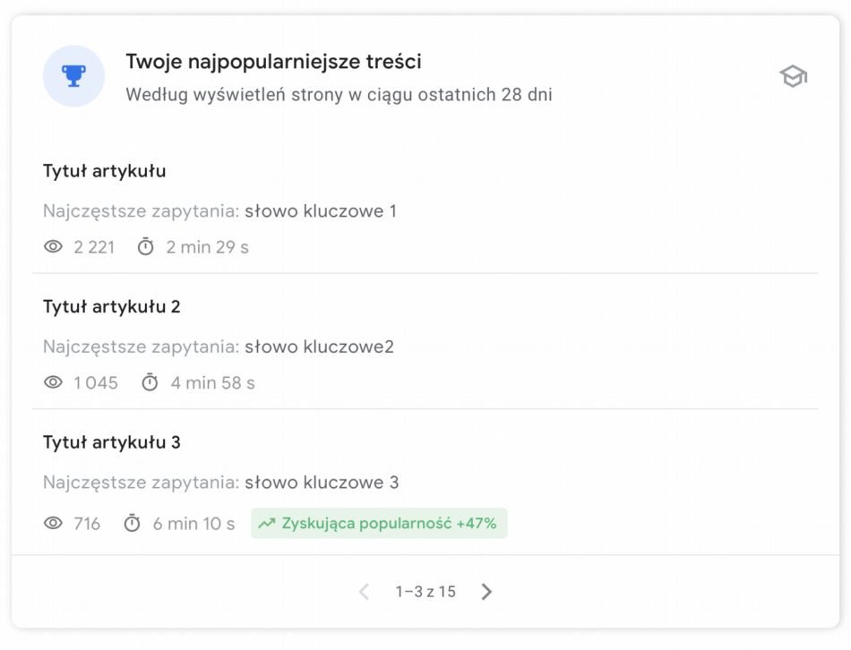 - Nowe narzędzie analityczne przyjdzie nam z pomocą, szczególnie gdy poszukujemy odpowiedzi na pytania takie jak: Jakie treści są najpopularniejsze? Jakie publikacje zyskują na popularności? Skąd pochodzą odbiorcy treści publikowanych na stronie? Czego szukają potencjalni klienci w wyszukiwarce Google, jakich słów kluczowych do tego wykorzystują? Jakie publikacje przekierowują użytkowników na Twoją stronę lub do Twoich treści?