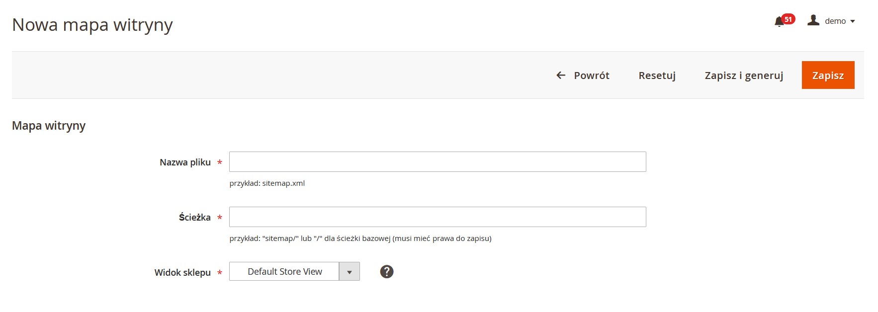 Konfiguracja mapy witryny XML w Magento