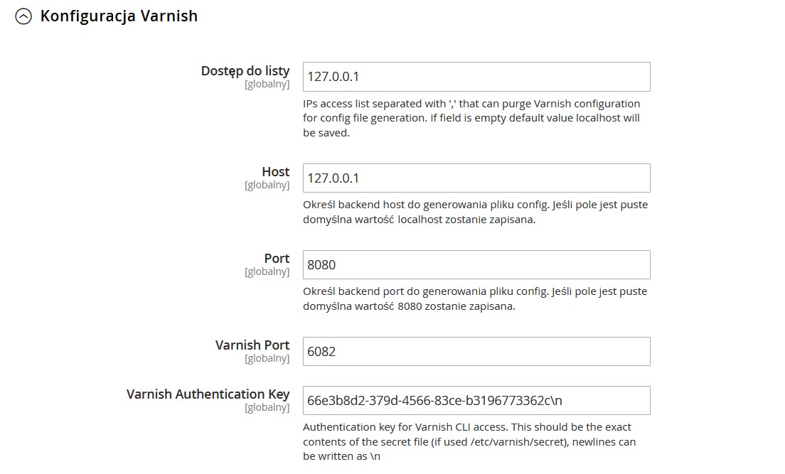 Gdy to zrobisz pojawi się nowa sekcja Konfiguracja Varnish. Uzupełnij pola danymi otrzymanymi od hostingodawcy.