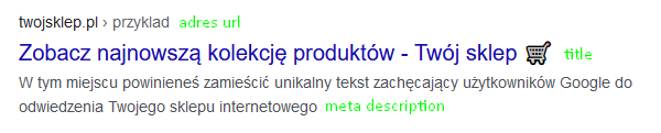 Jeśli uprościłeś już swoje adresy, powinieneś zadbać prezencję Twojej witryny w wynikach wyszukiwania. Tytuł strony, czyli popularny title oraz meta description mają duży wpływ zarówno na rankingi, jak i na współczynnik klikalności (CTR).