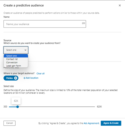 LinkedIn Ads – dodanie grupy predykcyjnych odbiorców