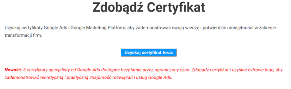 W Skillshopie pojawiły się 3 nowe certyfikaty dla profesjonalistów. Dotyczą one reklam w sieci wyszukiwania, sieci reklamowej oraz reklamy wideo. Aktualnie są one jednak w fazie pilotażowej, dlatego mogą nie być dostępne dla wszystkich użytkowników. Program zostanie rozbudowany w 2024 roku.