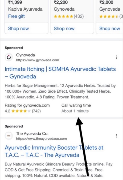 Czas oczekiwania na połączenie telefoniczne w reklamach tekstowych