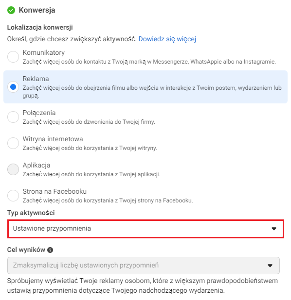 W Menedżerze reklam firmy Meta pojawił się nowy typ aktywności – „Ustawione przypomnienia”. Jego celem jest dotarcie do osób, które z większym prawdopodobieństwem ustawią przypomnienia dotyczące nadchodzącego wydarzenia.