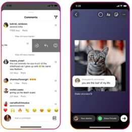 Według Instagrama taka funkcja może inspirować i inicjować wartościowe rozmowy z fanami, dając możliwość wyróżnienia kluczowych komentarzy. Dzięki takiemu ulepszeniu będzie można prezentować opinie aktywnych fanów w nowym formacie In-Stream.