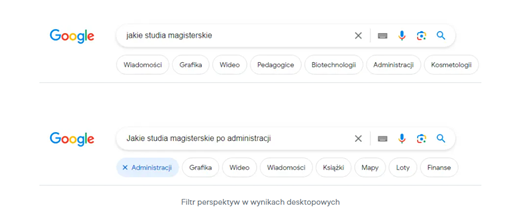 Perspectives pozwalają użytkownikom na poszukiwanie informacji z innej perspektywy, sugerując różne dodatkowe warianty zapytania. To narzędzie pomaga precyzyjniej zdefiniować zakres poszukiwanych informacji. Obecność tej funkcji może mieć pozytywny wpływ na pozycjonowanie stron internetowych, poprzez kierowanie ruchu na lepiej dopasowane frazy.