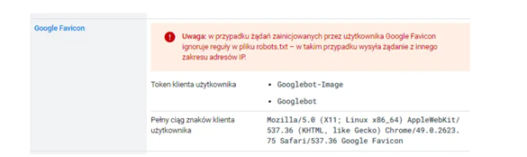 - Wycofany User-agent Google Favicon