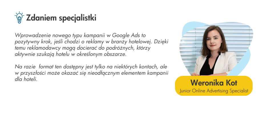 Na niektórych kontach Google Ads pojawił się nowy typ kampanii, który pozwala na promowanie hoteli w wyszukiwarce oraz w Mapach Google.