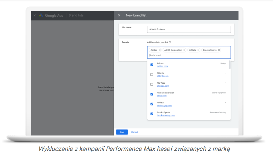 Nowa funkcja pozwoli na bardziej precyzyjne kierowanie reklam wyświetlanych w zasobach sieci wyszukiwania i Zakupach Google. Wykluczenia marek dotyczą każdej marki, więc w ten prosty sposób można wykluczyć frazy brandowe z wybranych kampanii reklamowych na swoim koncie. Wykluczenia będą dotyczyć również kampanii Performance Max. Można zdefiniować wykluczenia dla poszczególnych kampanii lub skorzystać z listy wykluczeń w wielu kampaniach na raz, co zdecydowanie usprawni proces ich optymalizacji. Aby skorzystać z wykluczeń marek wystarczy wybrać odpowiednie marki w interfejsie i dodać je do listy wykluczeń. Jeżeli marki, której szukasz nie będzie na liście, możesz przesłać prośbę o jej dodanie bezpośrednio do Google.