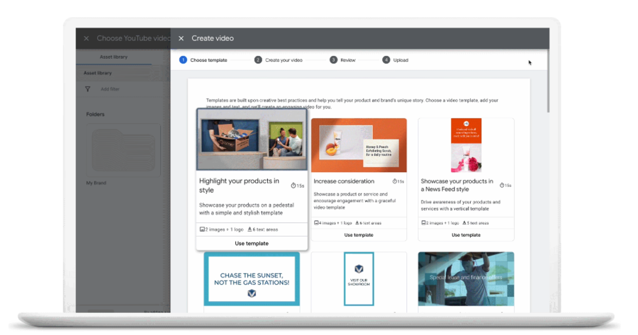Na kontach Google Ads ma pojawić się nowe narzędzie do tworzenia filmów, które pozwoli w łatwy sposób tworzyć komponenty wideo z wykorzystaniem gotowych szablonów. Narzędzie będzie dostępne w sekcji Komponenty, podczas tworzenia kampanii Performance Max, co pozwoli na szybkie generowanie wideo do Twoich kampanii reklamowych. Aby stworzyć wideo konieczne jest przesłanie materiału wideo na Twój kanał w YouTube oraz połączenie kanału w YouTube z kontem w Google Ads. Wygenerowany materiał wideo należy również przesłać na kanał YouTube, aby móc wykorzystać go w kampaniach reklamowych.
