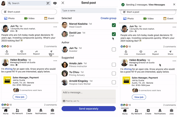 LinkedIn dodaje nową opcję udostępniania postu wielu członkom jednocześnie