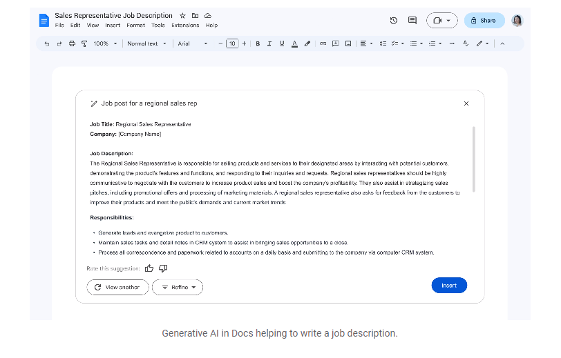 W Google Docs, zamiast dotychczasowej białej kartki, powinniśmy zobaczyć okienko „Help me write”, co w tłumaczeniu na język polski oznacza „Pomóż mi napisać”. W okienku będzie istniała możliwość wpisania dowolnego polecenia. Później to już w rękach modelu AI będzie leżało stworzenie jego prawie że ostatecznej wersji, którą będzie można wysłać do odbiorcy. W przypadku potrzeby jego redakcji narzędzie będzie dawało nam możliwość edycji tekstu, w postaci korekty lub dalszej rozbudowy.