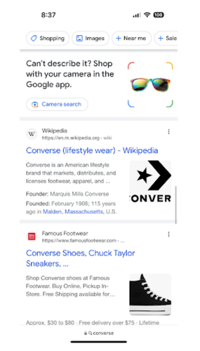 Widoczny wyżej fragment organicznych wyników wyszukiwania, który kieruje do Google Lens można spotkać na urządzeniach mobilnych.