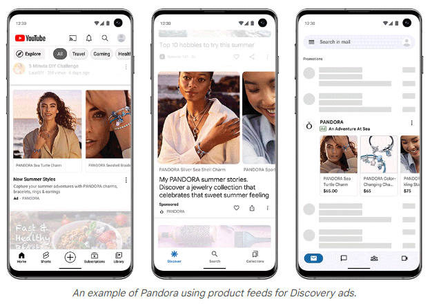 Pod koniec marca 2023 roku Google poinformowało o wprowadzeniu nowych funkcji w kampaniach reklamowych Discovery. Kampanie tego typu pozwalają na wyświetlanie reklam na stronie głównej YouTube, w sekcji warte obejrzenia, na kartach Discover oraz na kartach „Oferty” i „Społeczności” w Gmailu. Reklamy mają atrakcyjną wizualnie formę graficzną (karuzele z przesyłanych grafik, kwadraty, portrety).