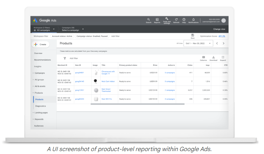 Nowości pojawiły się również w sekcji związanej z raportowaniem wyników kampanii reklamowej. W panelu reklamowym dostępny jest już raport skuteczności kampanii na poziomie produktów z podpiętego pliku produktowego. Można z łatwością sprawdzić, które produkty generują więcej wyświetleń i konwersji istotnych z perspektywy konkretnego biznesu. Dodatkowo kampanie Discovery od II kwartału 2023 roku, będą mogły korzystać z atrybucji opartej na danych (DDA – Data Driven Attribution), która przypisuje konwersje na podstawie interakcji użytkowników z reklamami. Dzięki temu optymalizując kampanie, będzie można wykorzystać dokładniejsze dane dostępne na koncie reklamowym.