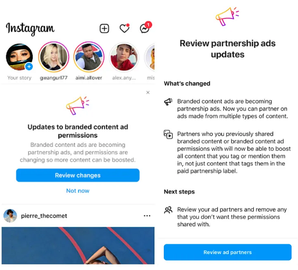 Instagram aktualizuje zasady dotyczące marketingu afiliacyjnego, a także zmienia nazwę swoich reklam z treściami markowymi na reklamy partnerskie, aby lepiej informować o zmieniającym się podejściu do tego tematu. Dzięki zmianie Instagram umożliwi markom promowanie większej liczby rodzajów treści tworzonych przez użytkowników w aplikacji, a nie tylko postów, oznaczonych etykietą „płatne” czy „sponsorowane”. Zapewni to markom nowe sposoby zarabiania na UGC, a jednocześnie da twórcom więcej możliwości nawiązywania partnerstw biznesowych, poprzez rozszerzenie puli potencjalnych partnerów reklamowych, którzy mogą łączyć się z nimi na podstawie ich postów.