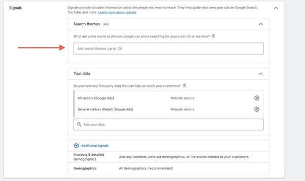 Możliwość tworzenia nowych sygnałów w Performance Max