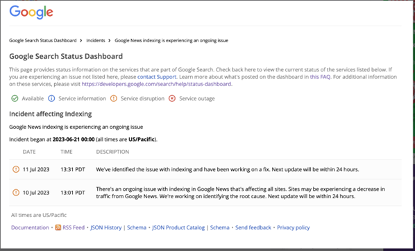 Zakłócenia w indeksacji Google News i spadek ruchu organicznego