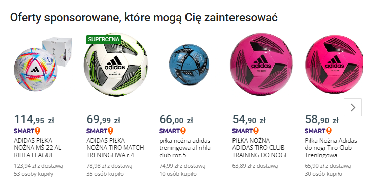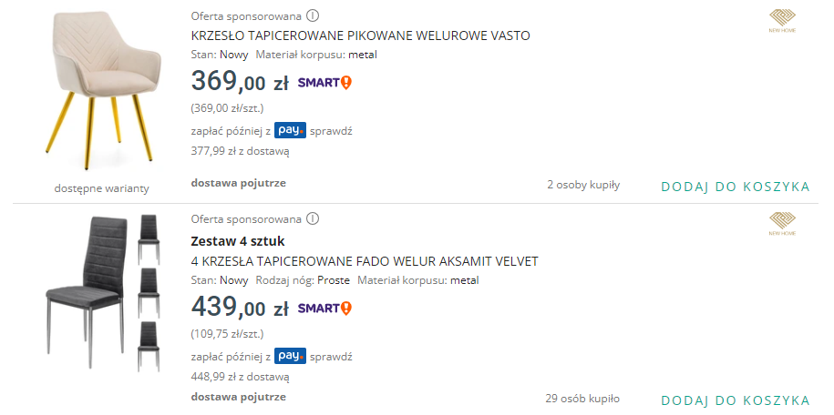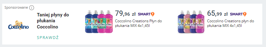Oferty sponsorowane mogą wyświetlać się również w środku listingu, pomiędzy produktami, które nie są promowane, a także w lewej kolumnie, znajdującej się pod filtrami.