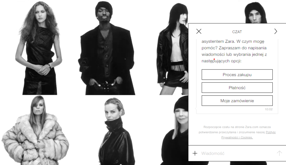 Przykład chatbota, wykorzystywanego w sklepie internetowym ZARA. Źródło: www.zara.com.