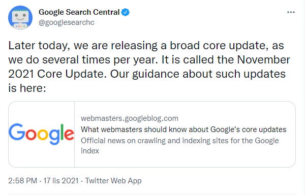 November Core Update – 17 listopada
