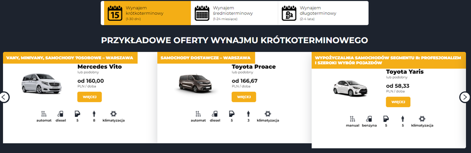 Na stronie https://dolcar.auto.pl/ także mamy ciekawą możliwość wyszukiwania aut. Pomijając standardową wyszukiwarkę, z łatwością możemy przełączać się pomiędzy typem aut i zobaczyć przykładowe oferty: