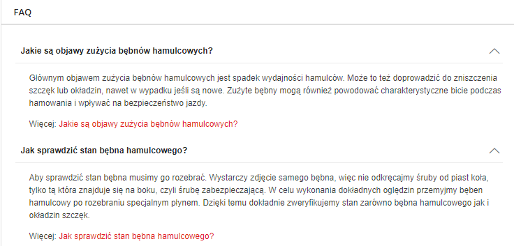 W powyższym przykładzie iparts.pl dodatkowo kieruje użytkowników do rozbudowanych artykułów, a na podstronie kategorii jest tylko zajawka.