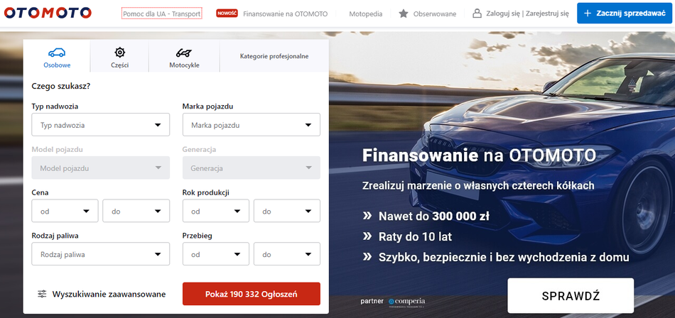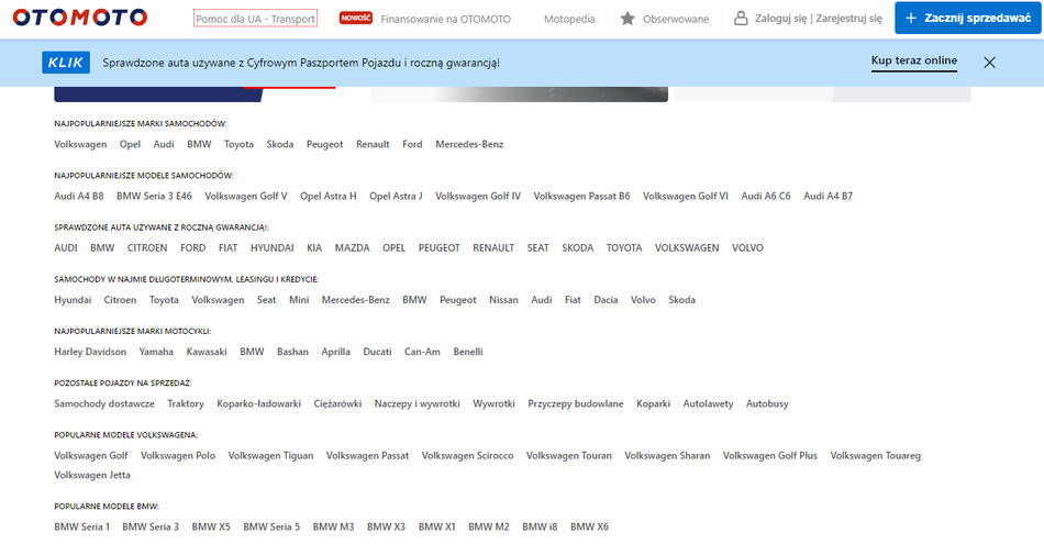 Przykład: https://www.otomoto.pl/ (strona główna):