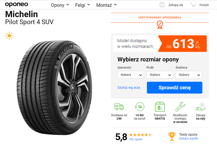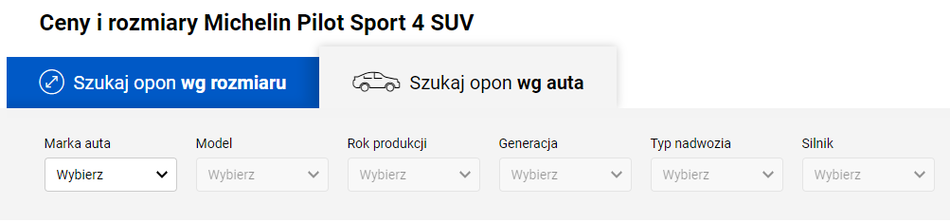 Na podstronie produktu: Szukaj wg. auta. https://www.oponeo.pl/model-opony/michelin-pilot-sport-4-suv