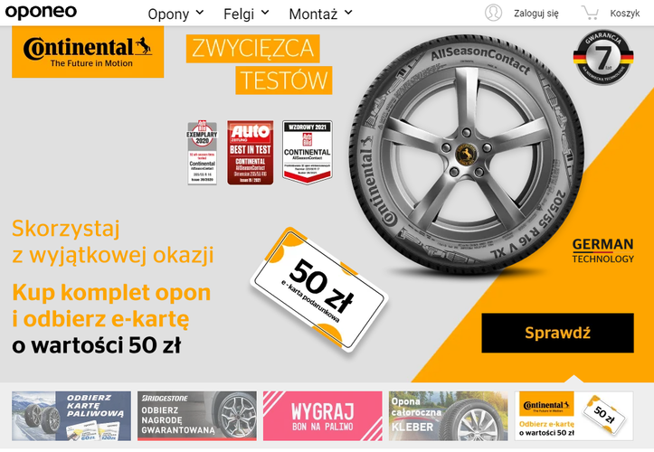 Na karcie produktowej możemy przejść do wyszukiwarki opon: