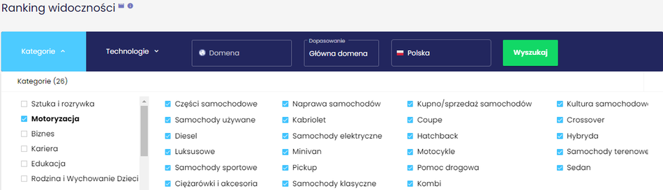 Innym, dobrym sposobem na określenie liderów na danym rynku (jeśli chodzi o widoczność/SEO) jest Ranking w Senuto: