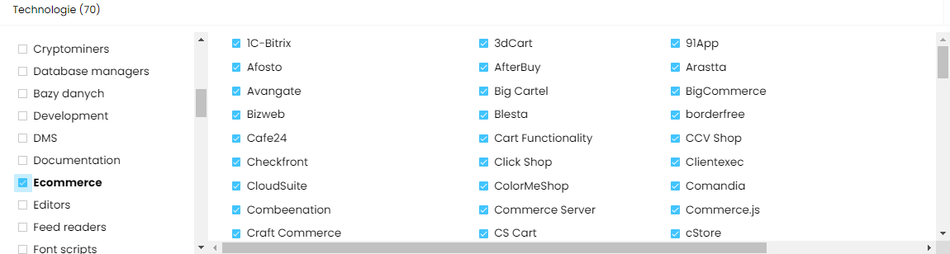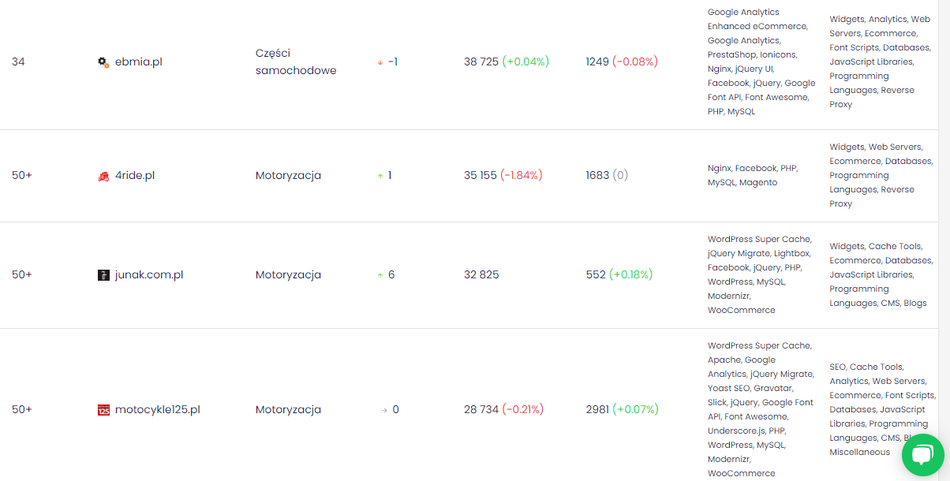 Dzięki niemu, w szybki sposób jesteśmy w stanie sprawdzić szacowany ruch, czy ilość fraz innych serwisów z danej branży. Podczas wybierania filtrów możemy nawet wybrać, czy ma to być np. e-commerce, blog, czy jeszcze inny rodzaj serwisu.