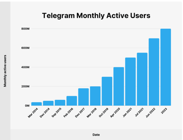 Źródło: https://www.demandsage.com/telegram-statistics/