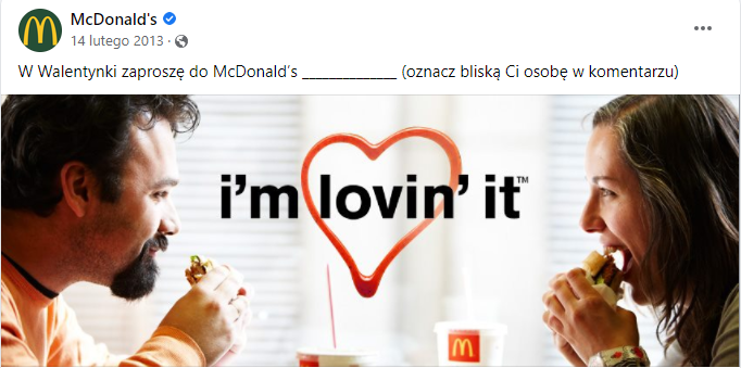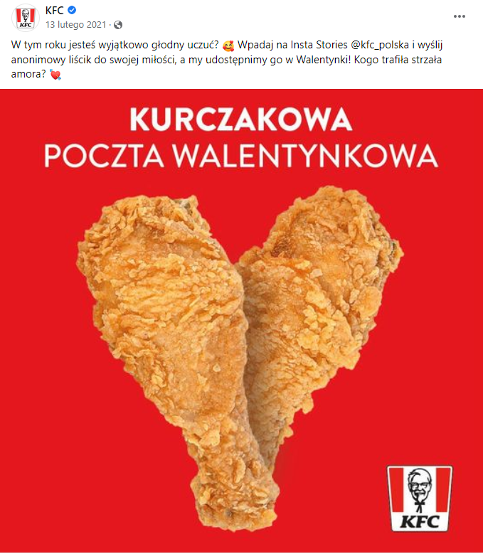 Przyjrzyjmy się kolejnej branży, która w okresie Walentynek zbiera żniwa. Tak do wizyty w swojej restauracji zachęcał kilka lat temu McDonald’s oraz rok temu KFC.