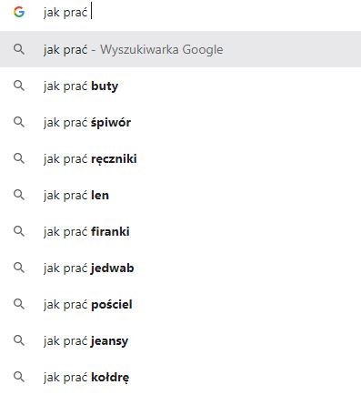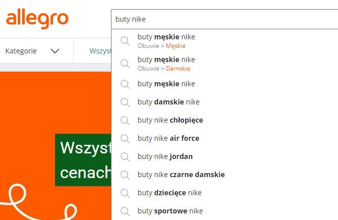 Wybierając frazy do artykułów, warto również sprawdzić, co proponują wyszukiwarki serwisów, takich jak Allegro, Skąpiec, Ceneo czy Google. Po wpisaniu słowa w wyszukiwarkę tych serwisów, otrzymujemy podpowiedź o kolejnych frazach, najczęściej wpisywanych przez użytkowników.