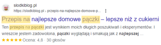 Jeśli wybrana fraza to „przepis na pączki”, keyword proximity wyniesie 2 słowa. Obserwując SERP można zauważyć, że na początku pojawią się słowa kluczowe, będące blisko siebie, a później słowa kluczowe, które są od siebie coraz bardziej oddalone.