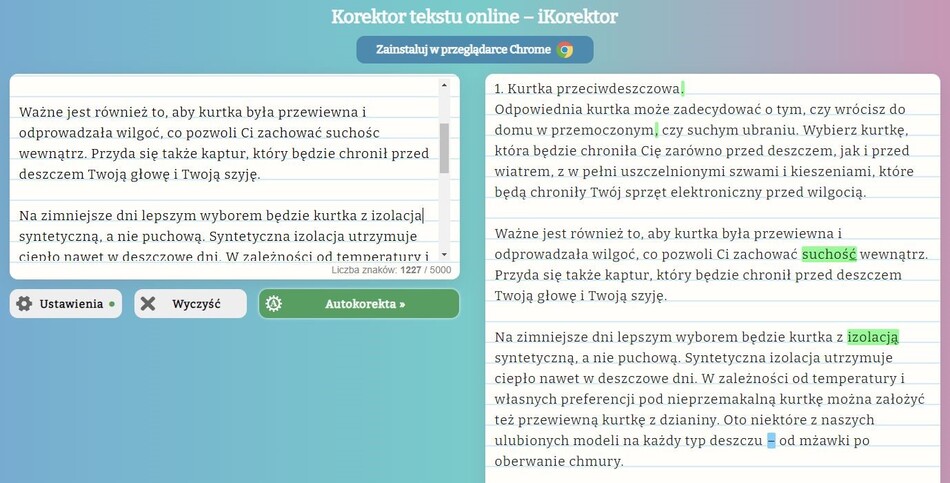 - iKorektor – narzędzie przydatne do sprawdzenia tekstu pod kątem poprawności językowej. Można w nim sprawdzić treści napisane w języku polskim. Wspierane przez sztuczną inteligencję, dokonuje automatycznej korekty błędów ortograficznych, gramatycznych, interpunkcyjnych, stylistycznych czy choćby literówek.